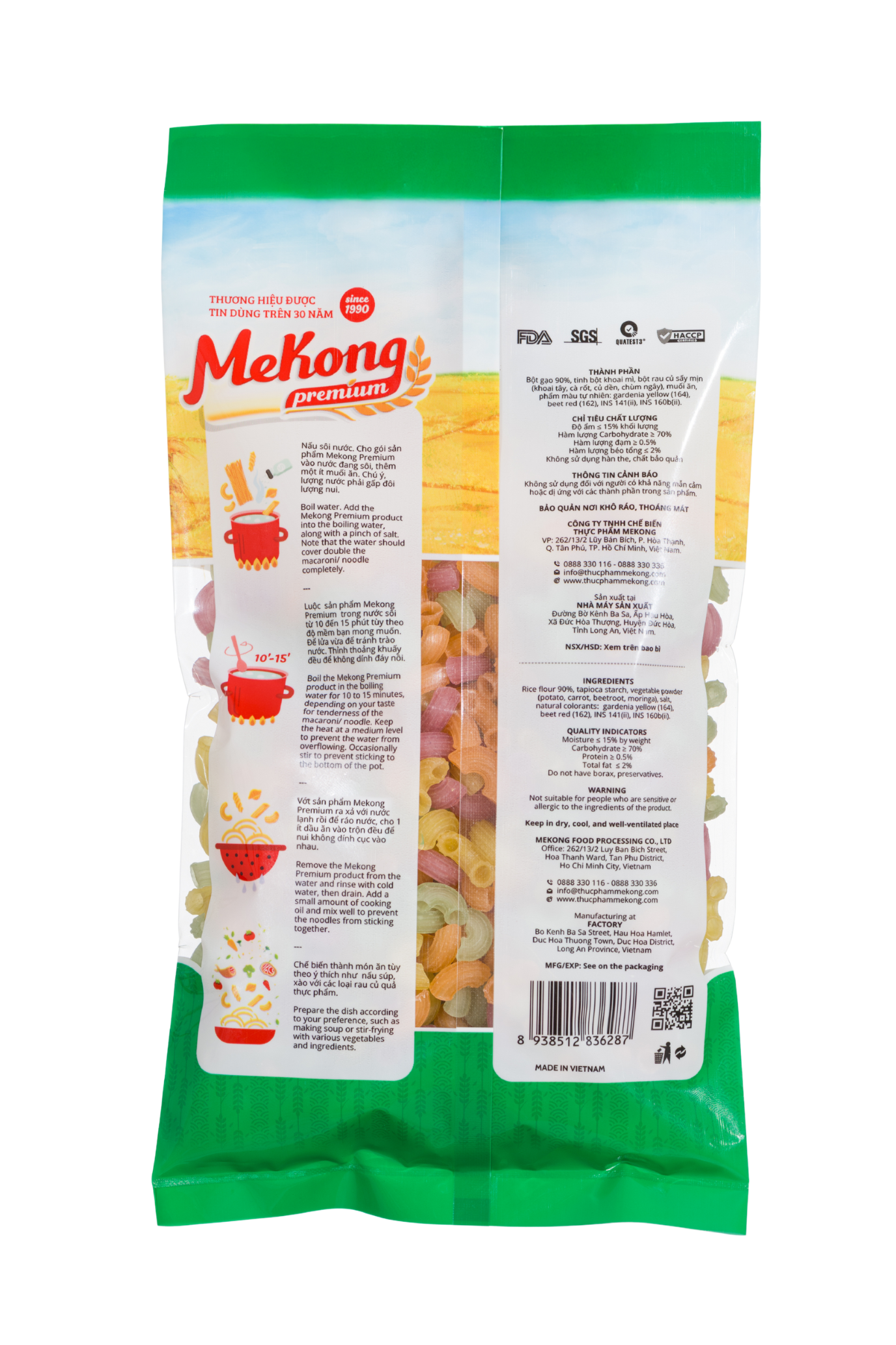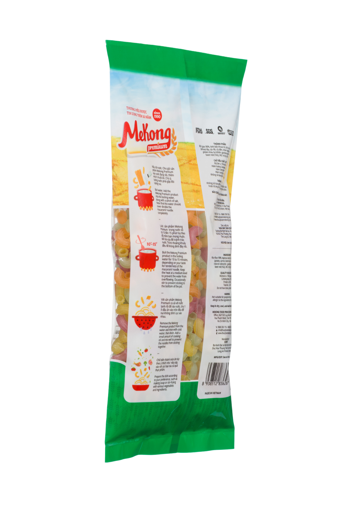 - Bước 3: Vớt sản phẩm Mekong Premium ra xả với nước lạnh rồi để ráo nước, cho 1 ít dầu ăn vào trộn đều để nui không dính cục vào nhau. Chế biến thành món ăn tuỳ theo ý thích như nấu súp, xào với các loại rau củ quả thực phẩm.
